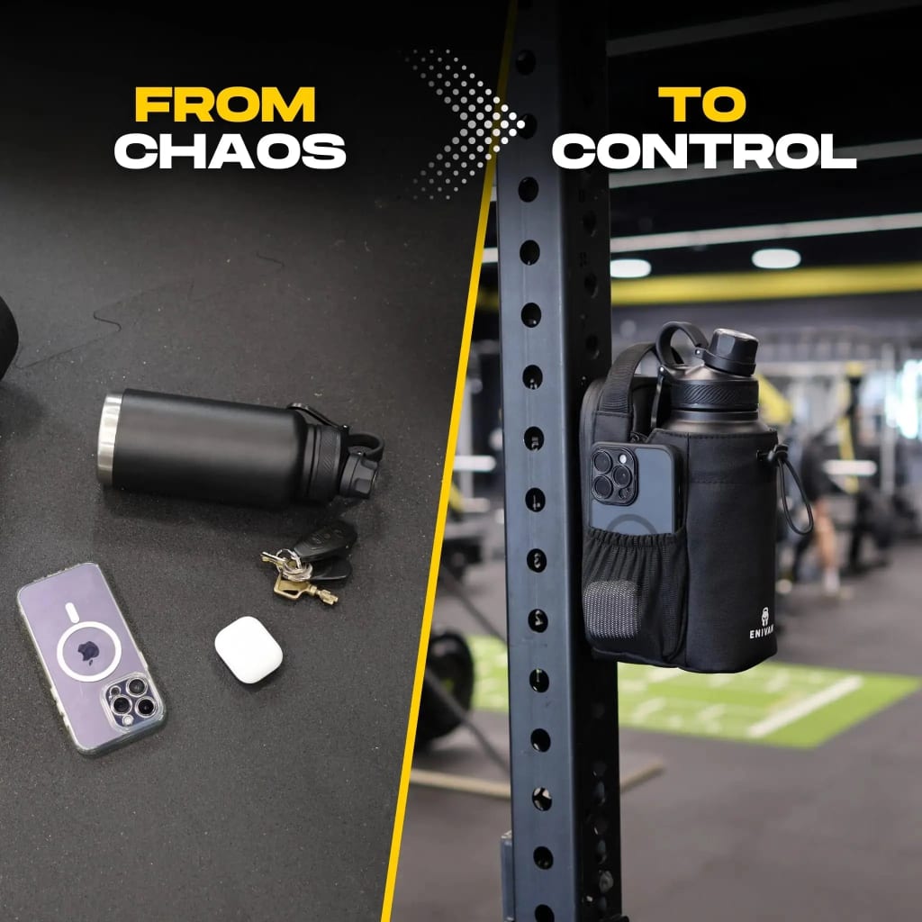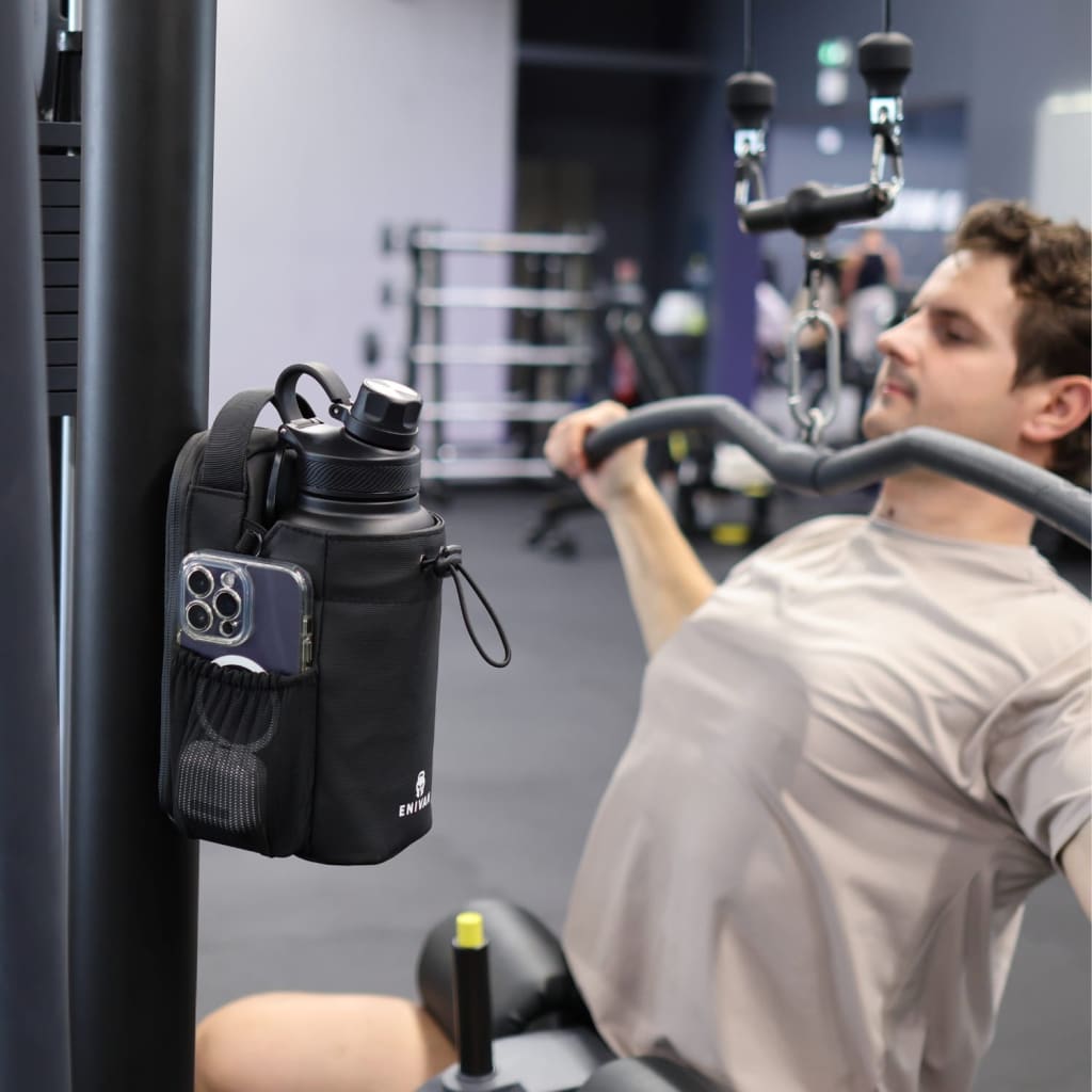 High-strength magnets, anti-slip lining, and a front zip pocket combine to keep your bottle and essentials secure. Padded phone pocket and carabiner clip add extra convenience for every workout.
