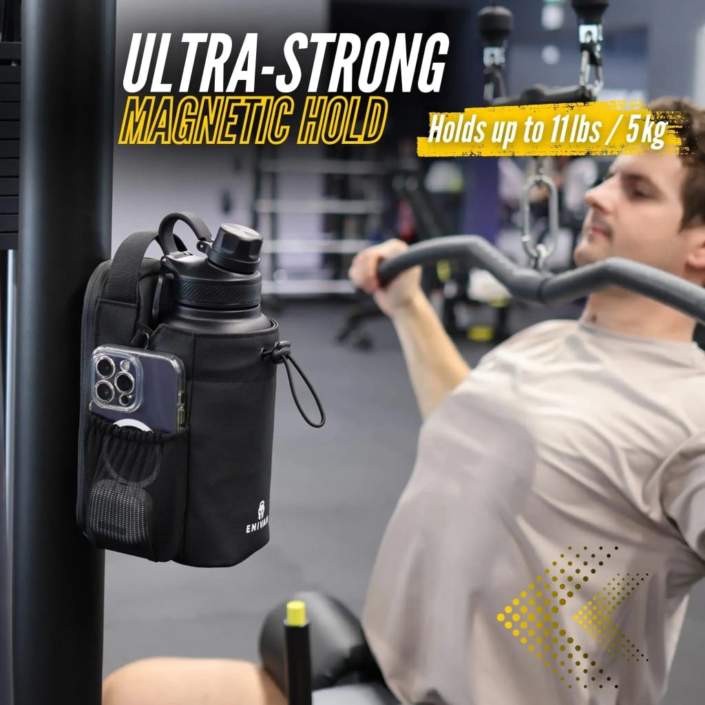 Enivan Black Magnetic Gym Bag with Bottle Holder - Water-Repellent & Ultra-Lightweight